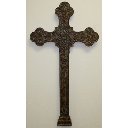 Our large wall cross is a stunning piece to bring inspiration to your home. Hand forged of iron and tole and finished in a brown taupe. A beautiful way to express your faith. Iron Cross Wall Decor has hooks on back for hanging and weighs just over 5 pounds. Because this item is hand finished there may be variations in color.