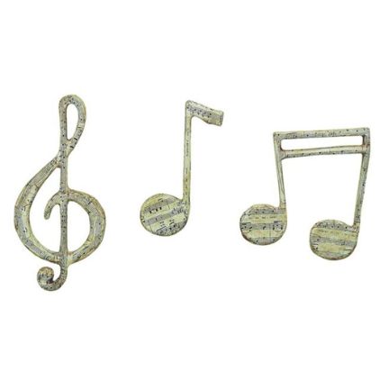 Our Music Symbols Wall Decor is hand made of papier mache then hand applied decoupage antique French music transfers. Hooks on back for hanging. The perfect wall decor gift for all the music lovers in your life. Comes as a set of three.